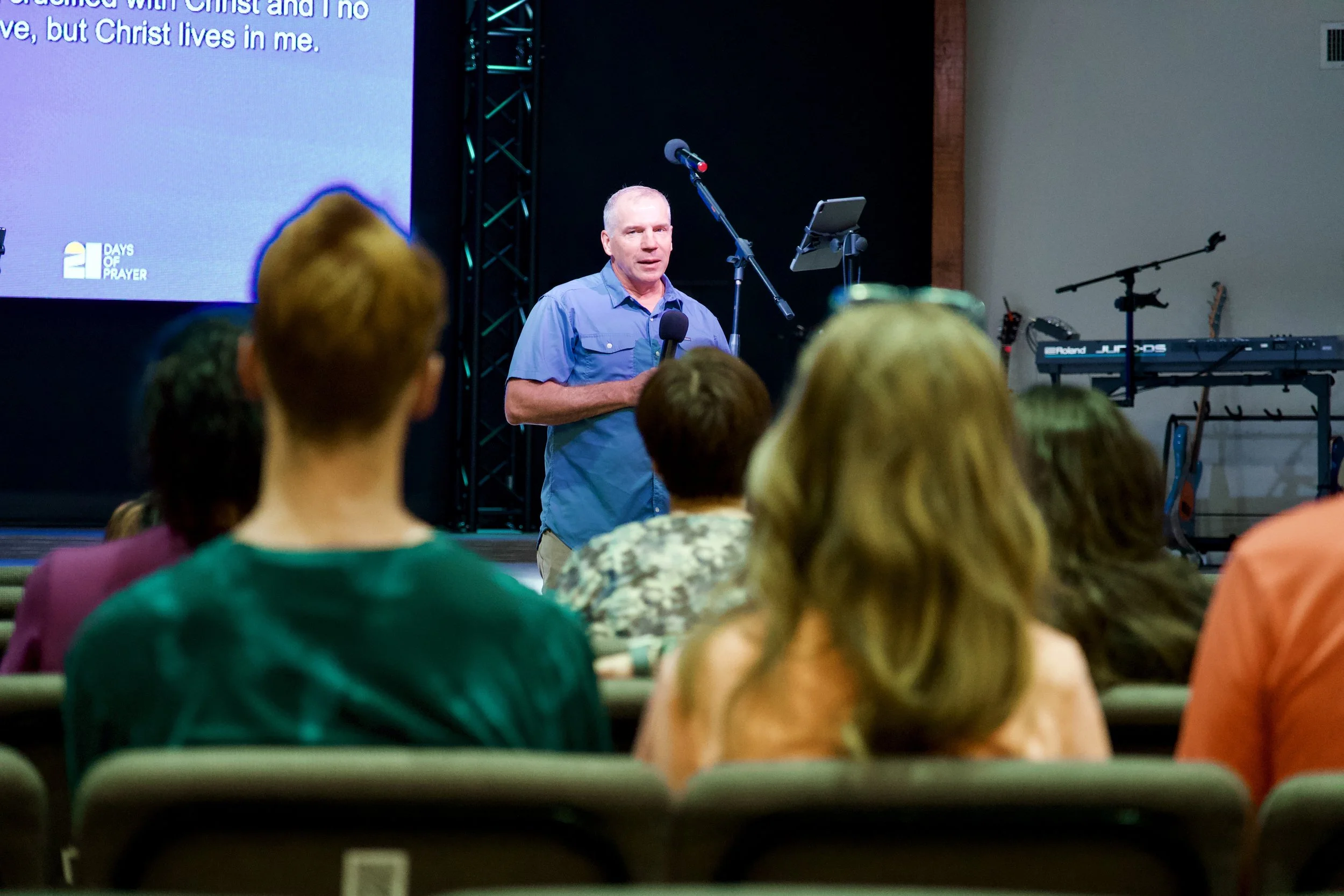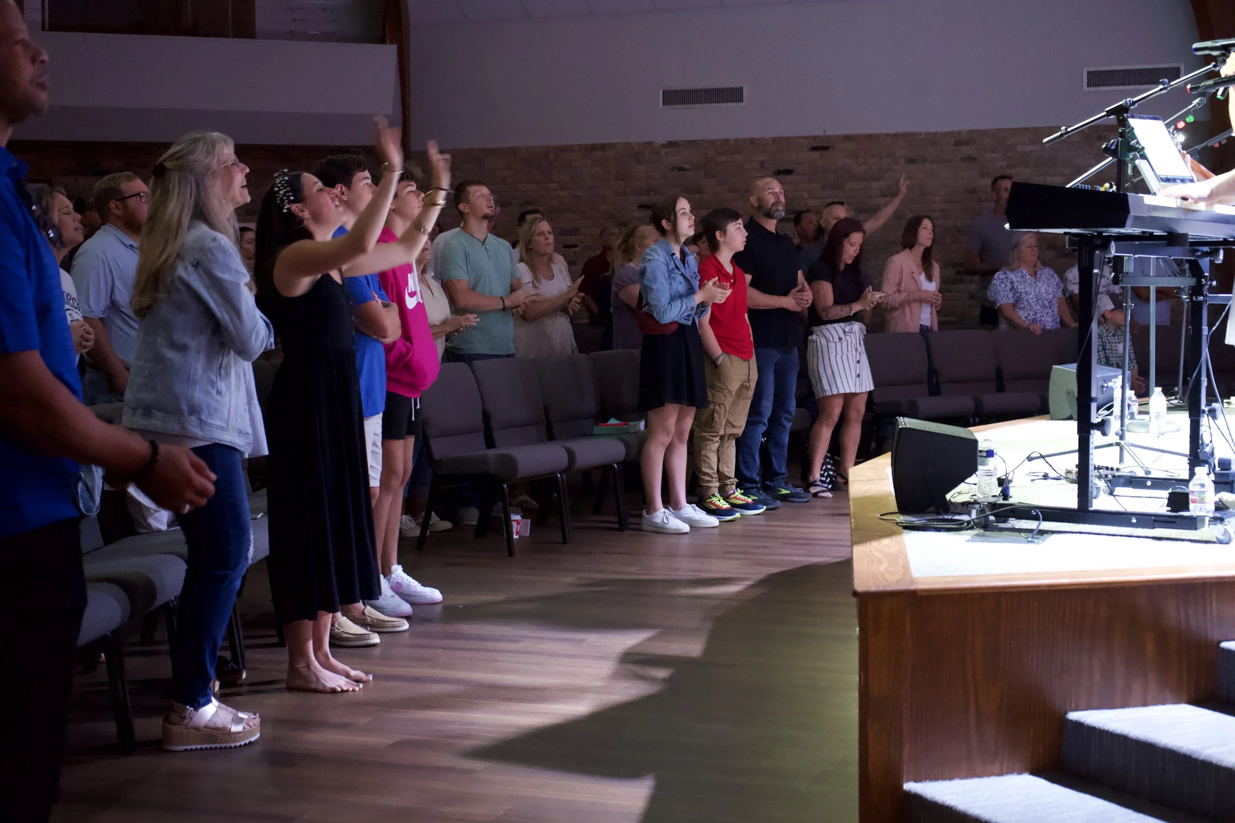 During worship we will typically bring the lights down and keep the volume up a little. We want people to feel comfortable to worship and engage in their own space and time.