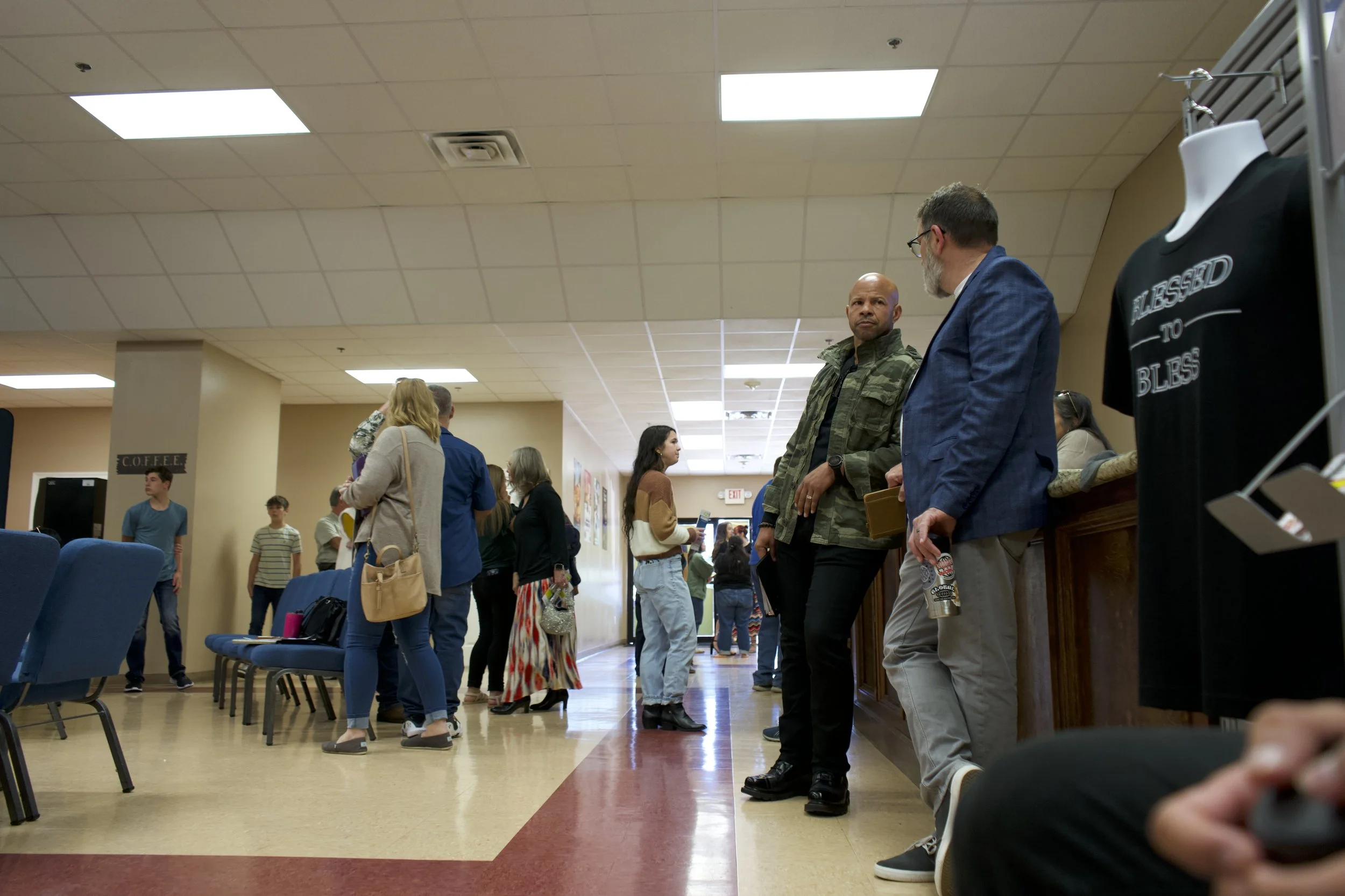 Just inside those doors you’ll find a smile and a greeter to help get you in the right direction. If you have children, the CrossRoads Kids check-in is right there. Just a few more steps and you’ll find a place to grab a cup of coffee as well as the information center where someone is happy to help answer any questions you may have.